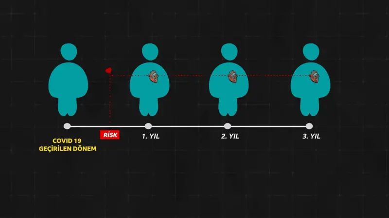 Covid geçirenlerin kalp hastalığı riskinin bir yıl boyunca devam ettiği biliniyordu. Lakin bu araştırma bu riskin üç yıl boyunca azalmadığını ortaya koyuyor.