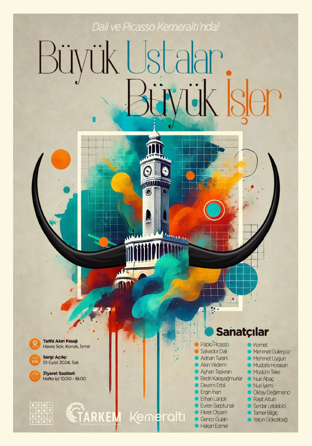 Büyük Ustalar Büyük İşler standı, 10 Eylül-10 Ekim tarihlerinde Tarihi Akın Pasajı’nda sanatseverlerin ziyaretine açık olacak. Pablo Picasso, Salvador Dali’nin yapıtlarının de bulunduğu stant, sanatseverlere büyük ustaların yapıtlarını tarihi bir yerde yakından görme imkânı sunarken, Kemeraltı’nın pahalarını de gözler önüne serecek.