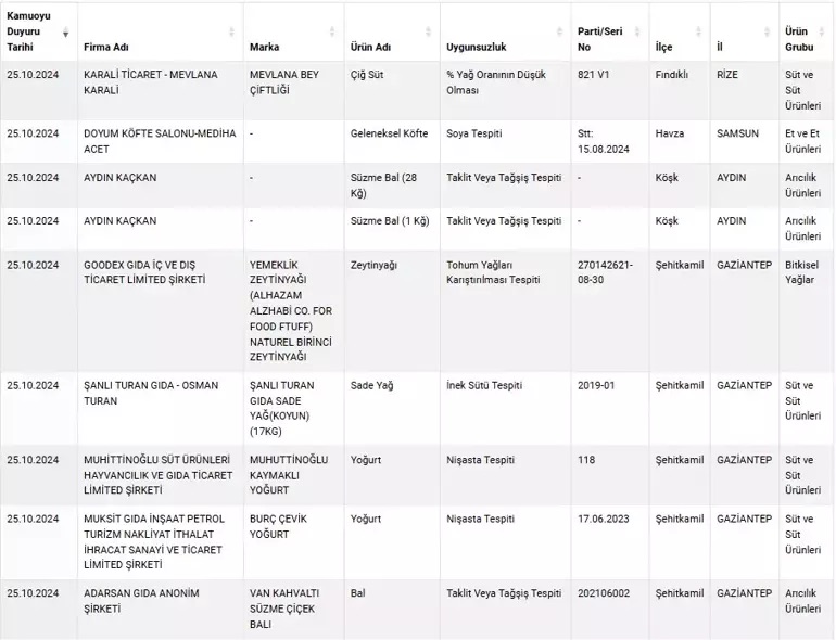 Herkesin ilgisini çeken sıhhati tehlikeye atan ve taklit-tağşiş yapılan eserlere her geçen gün yenisi ekleniyor. Vatandaşların sağlıklı besine erişmesi için Tarım ve Orman Bakanlığı yaptığı denetimler sonrası uygunsuz olan eserleri ifşa etmeye devam ediyor.